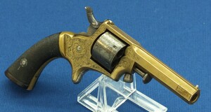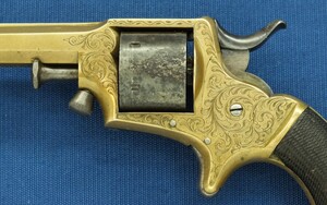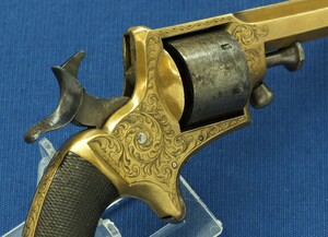 An antique English Tranter's patent 6 shot Caliber 30 Rimfire Revolver by Charles Osborne Birmingham. Length 19cm. In good/very good condition. Price 450 euro.
