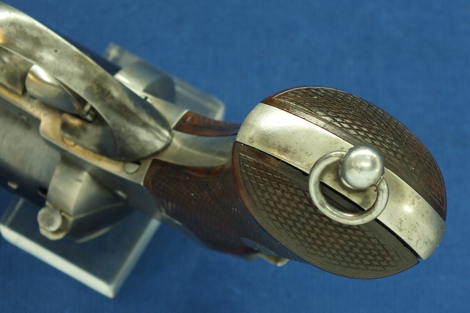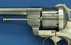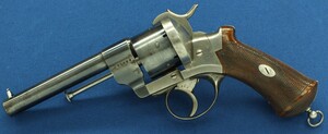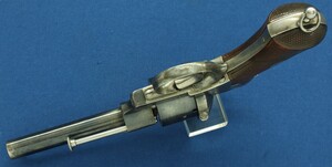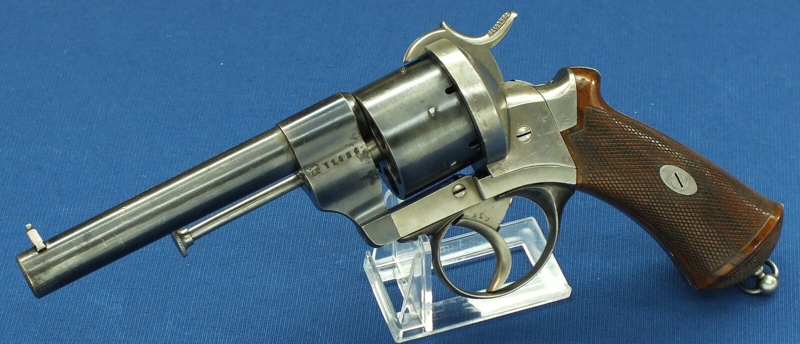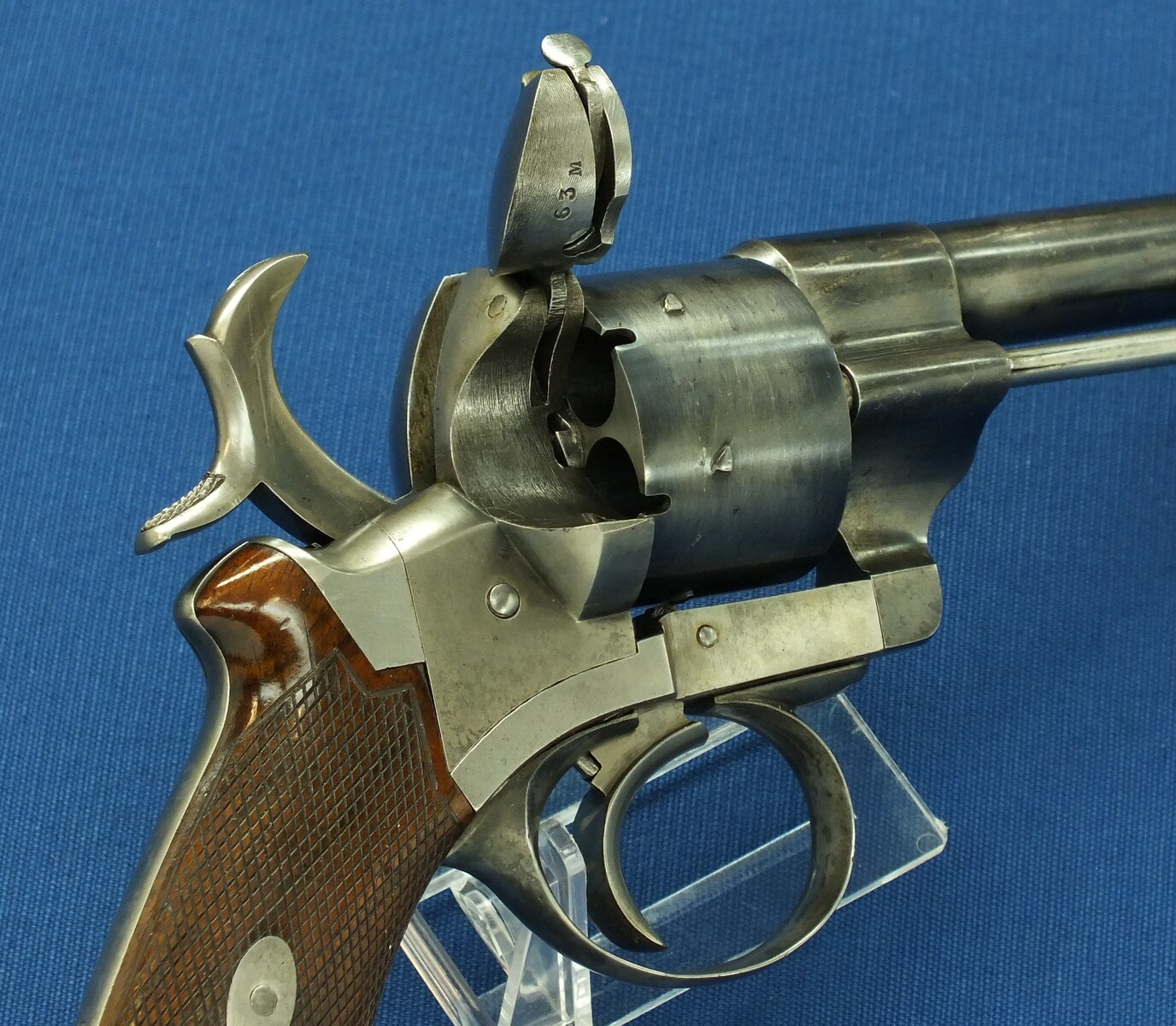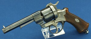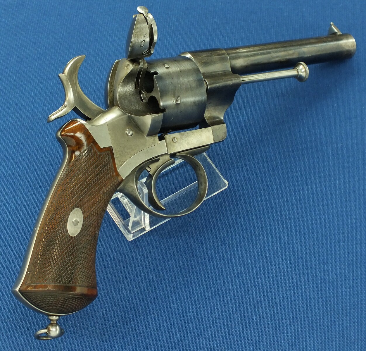 An antique French Triple Action Pinfire Revolver Lefaucheux Model 1862, signed "E.LEFAUXEUX BRTE S.G.D.G. A PARIS", caliber 12 mm, 6 shot, length 28.5 cm, in very good condition. Price 1.500 euro