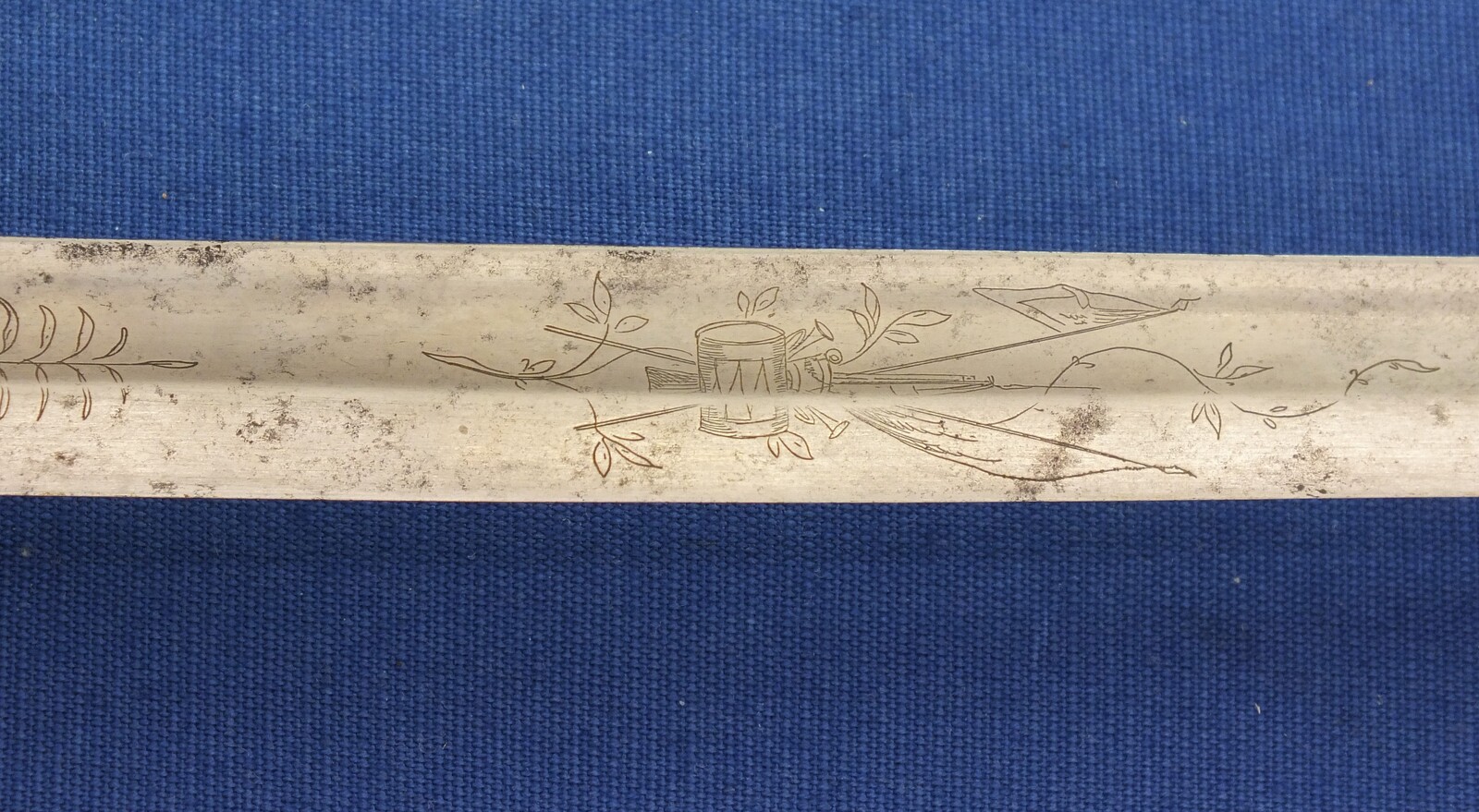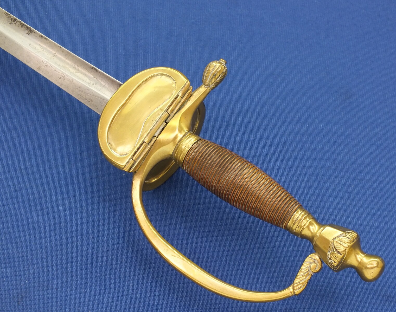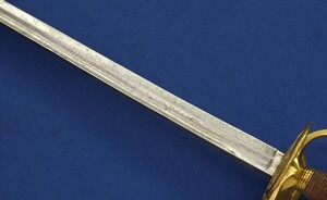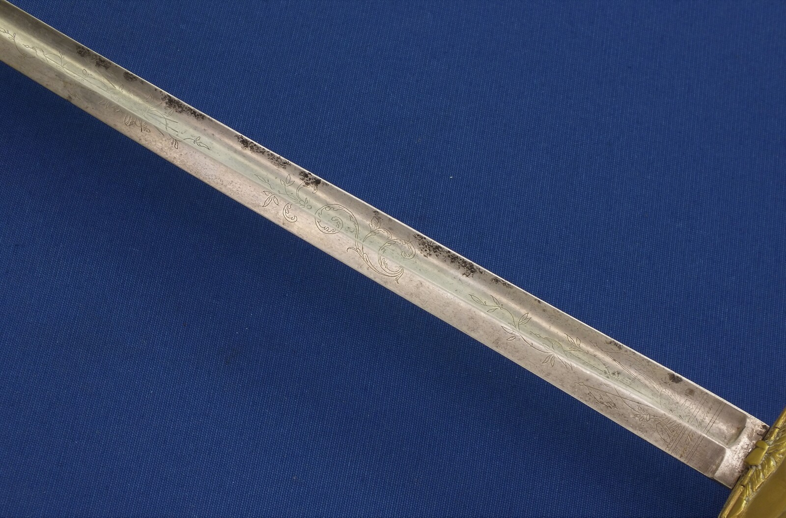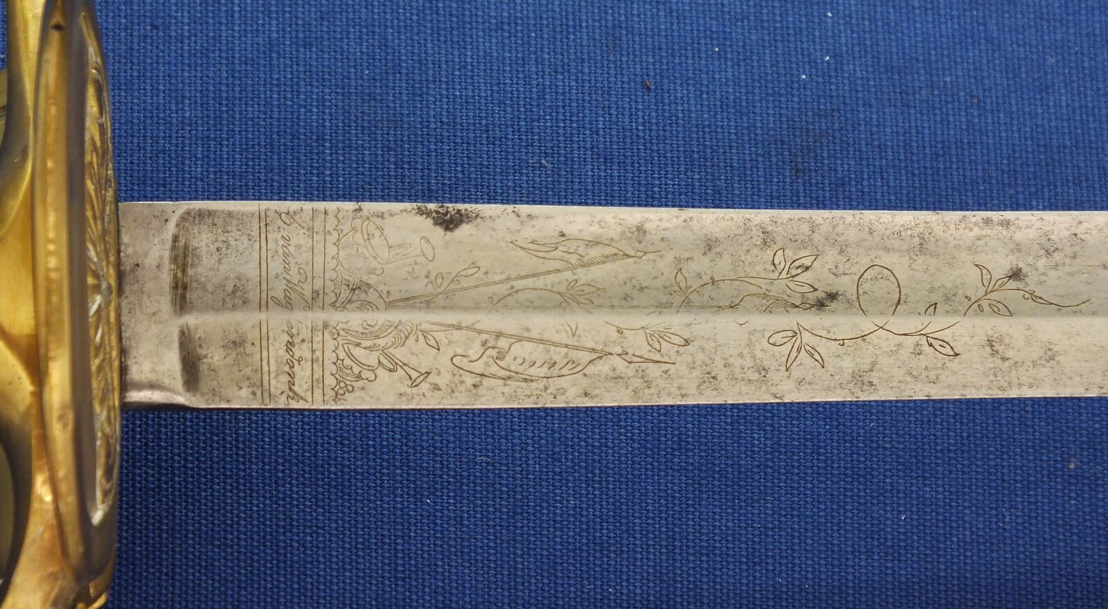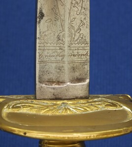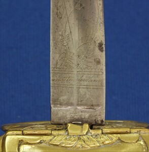 Fine blade with engraved decorations and the signature. Gilded brass hilt.
