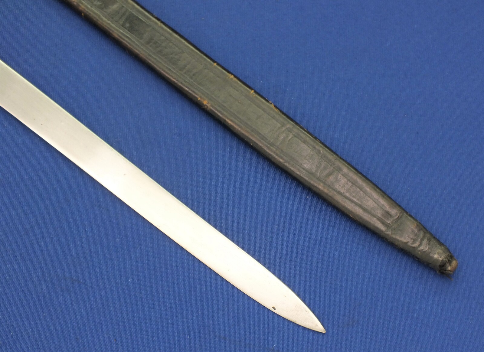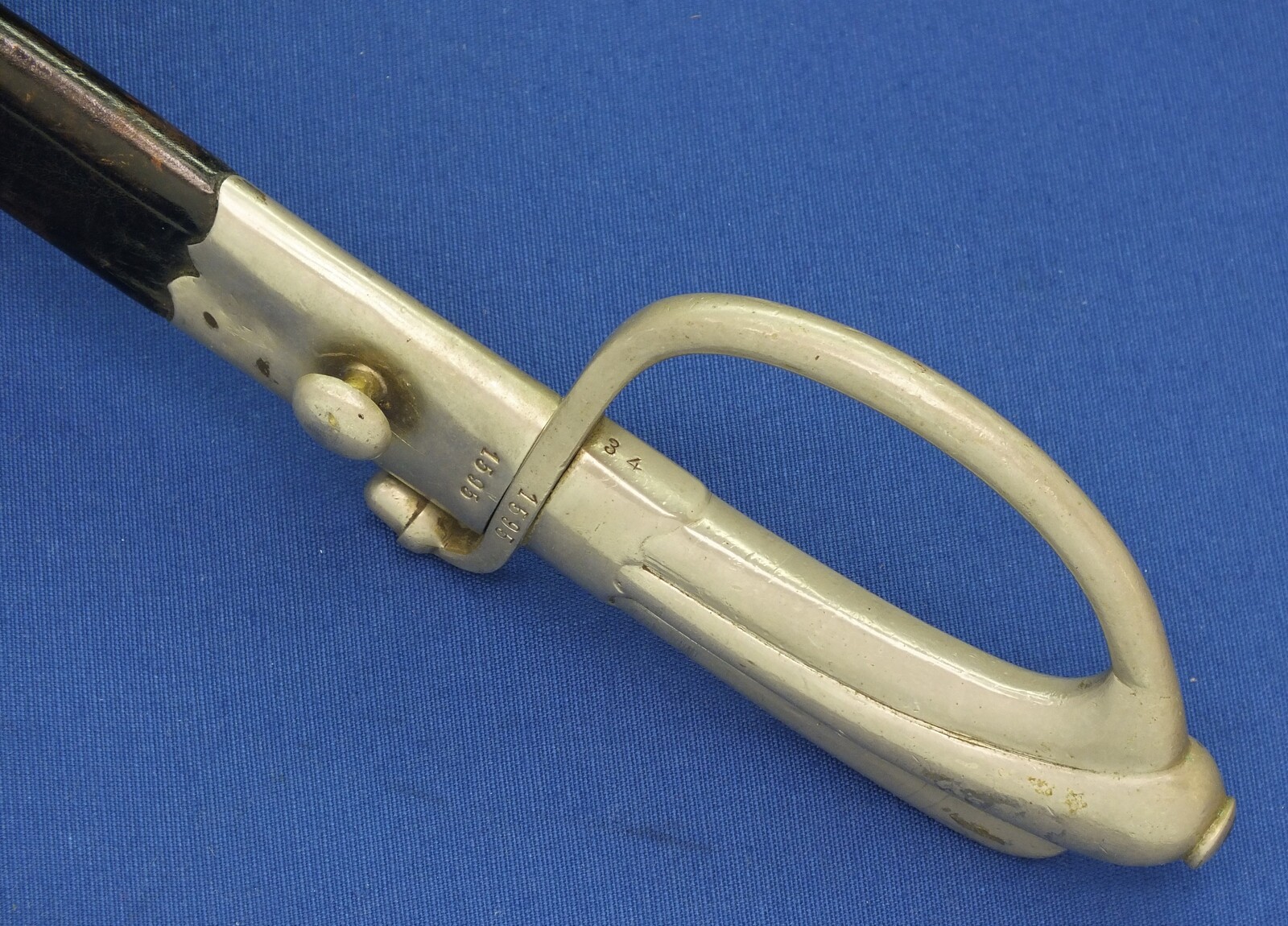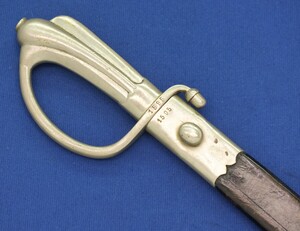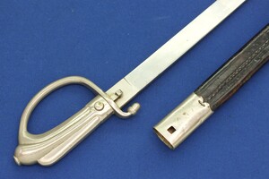 Nickel plated brass hilt en scabbard mount. SN 1595 sword and scabbard.. On the hilt also nr 34. Fine leather scabbard.