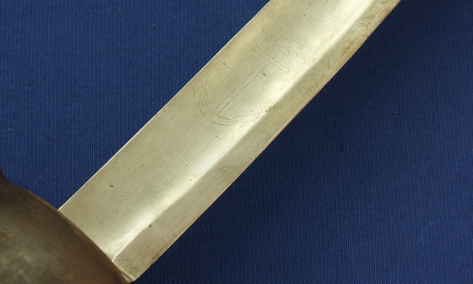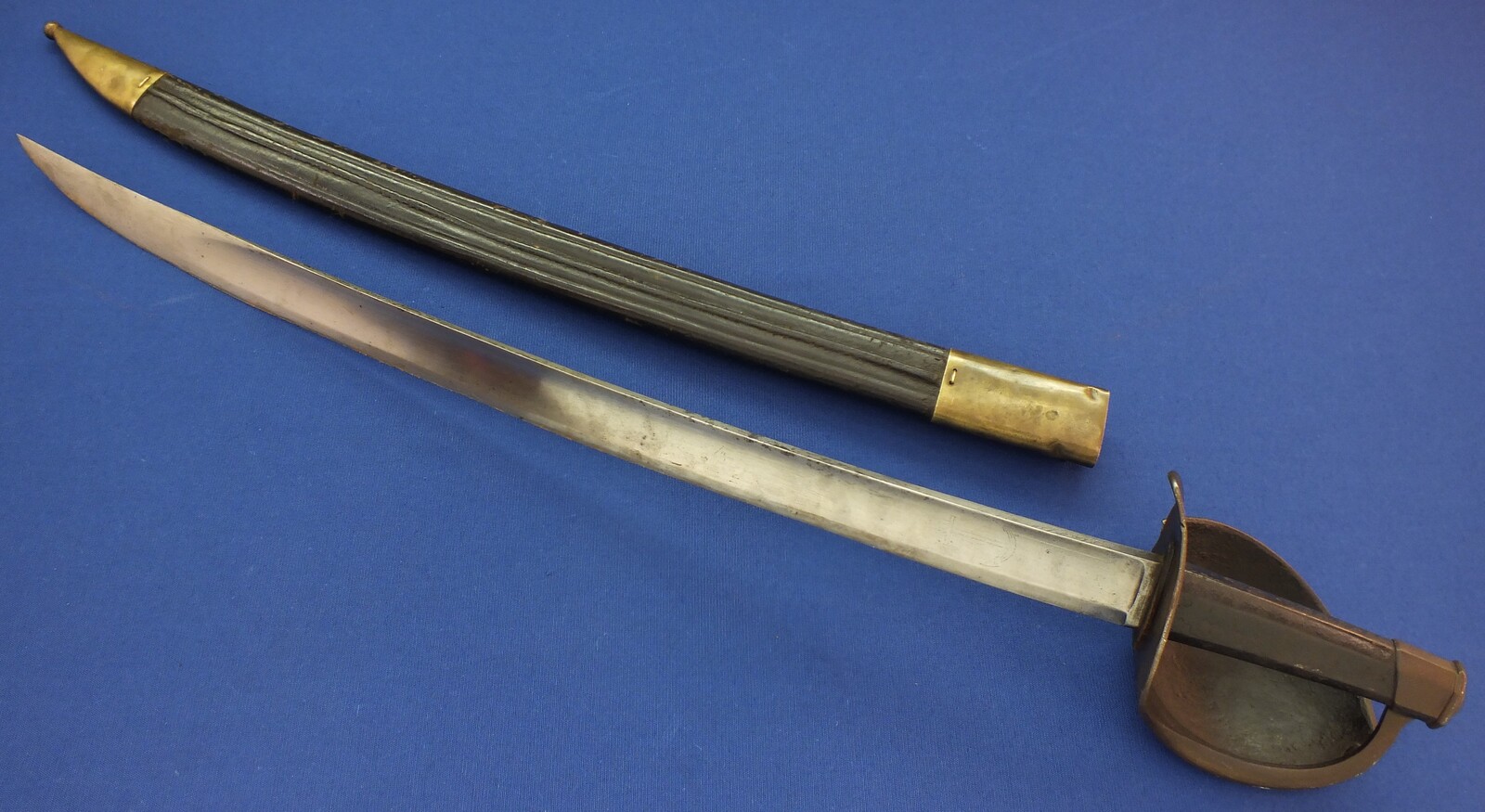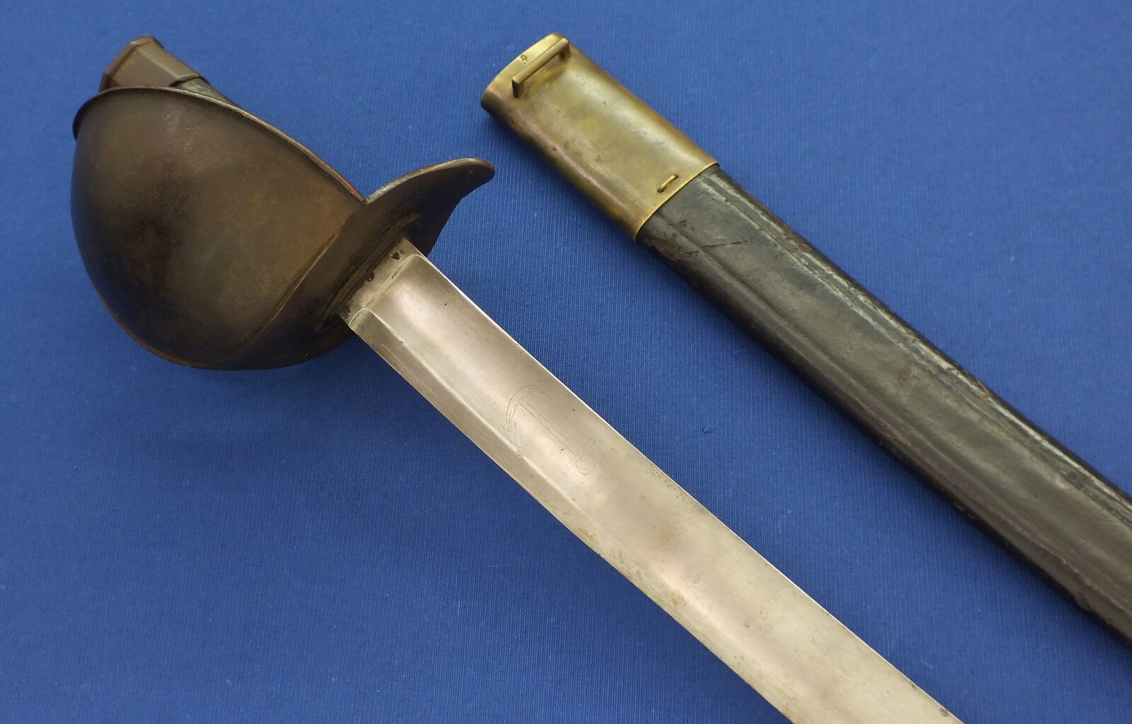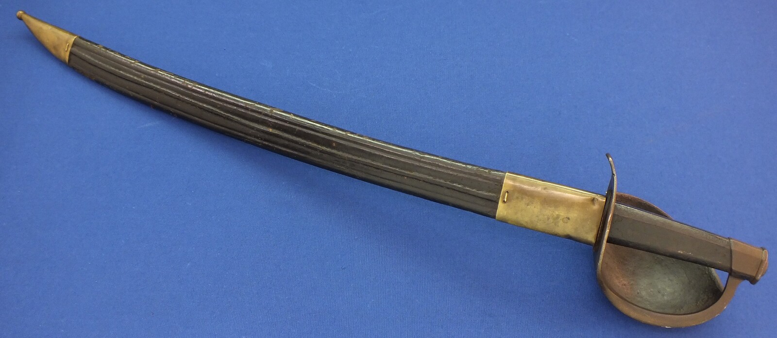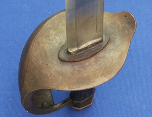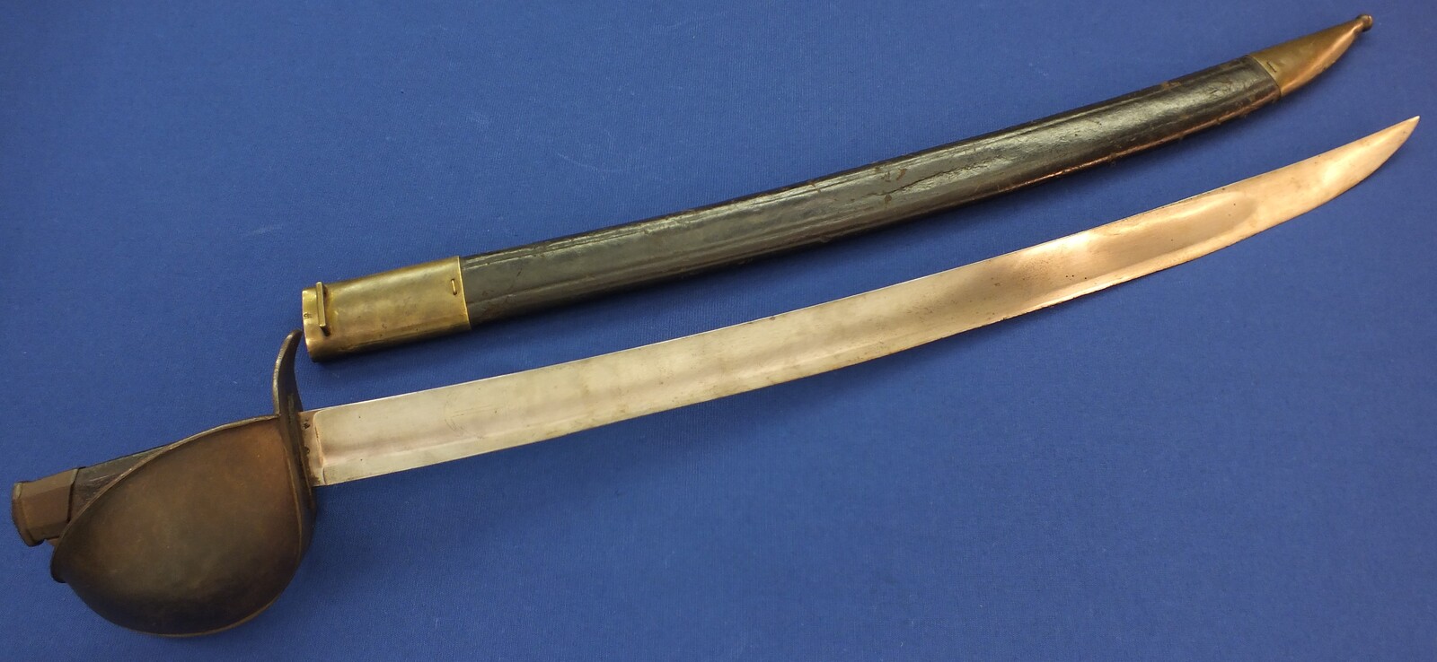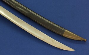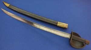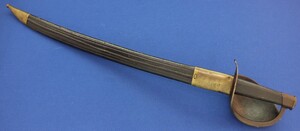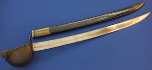 An antique French Model 1833 Navl Cutlass with original Leather Scabbard. Manufacture Royale de Chatellerault 1839. Length 83cm. In very good condition. Price 795 euro.